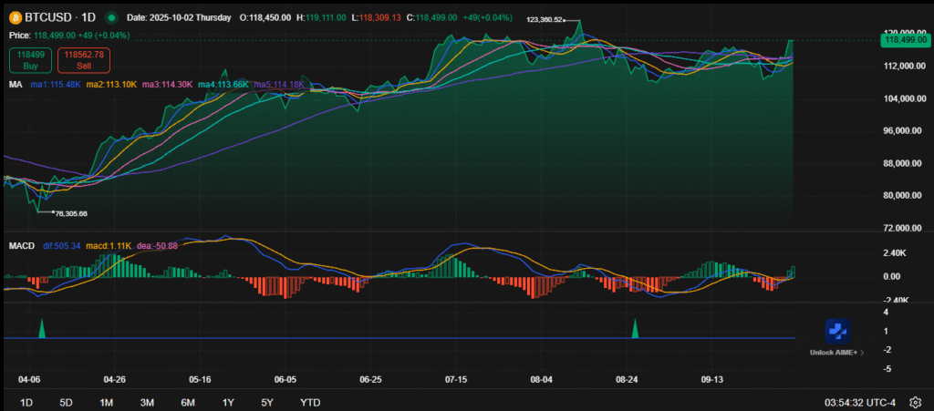 - At $113,000 to 115,000, it cannot be broken and the moving averages and a bullish MACD crossover that supports the upward momentum further.