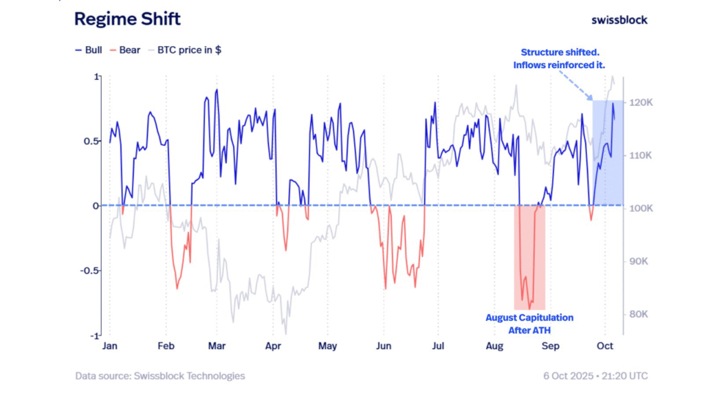 - Bitcoin’s price above $117k means 95% of the circulating supply is now profitable.