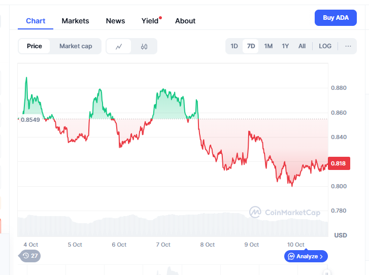 The top crypto in October is grabbing attention as investors search for the highest returns this year. Among the options, Cardano (ADA) has long been considered a reliable blockchain platform with solid adoption. However, a fresh contender, MoonBull ($MOBU), is catching the attention of investors with its presale and unique staking rewards. As of October 10, 2025, Cardano’s live price is $0.8177 USD with a 24-hour trading volume of $1,006,326,802, reflecting active investor engagement.