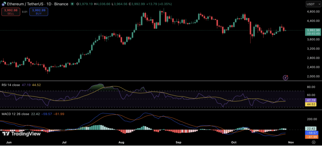Ethereum ($ETH) has maintained a relatively stable position near $4,000 despite a 3% drop over the past 24 hours. As the cryptocurrency market braces for key events, traders are focusing on the U.S. Federal Reserve’s upcoming interest rate decision.