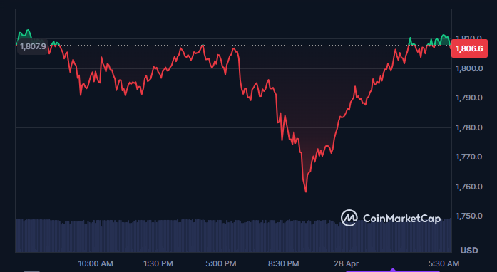 At the time of writing, Ethereum (ETH) is trading at $1,758, up 0.09% in the past 24 hours.