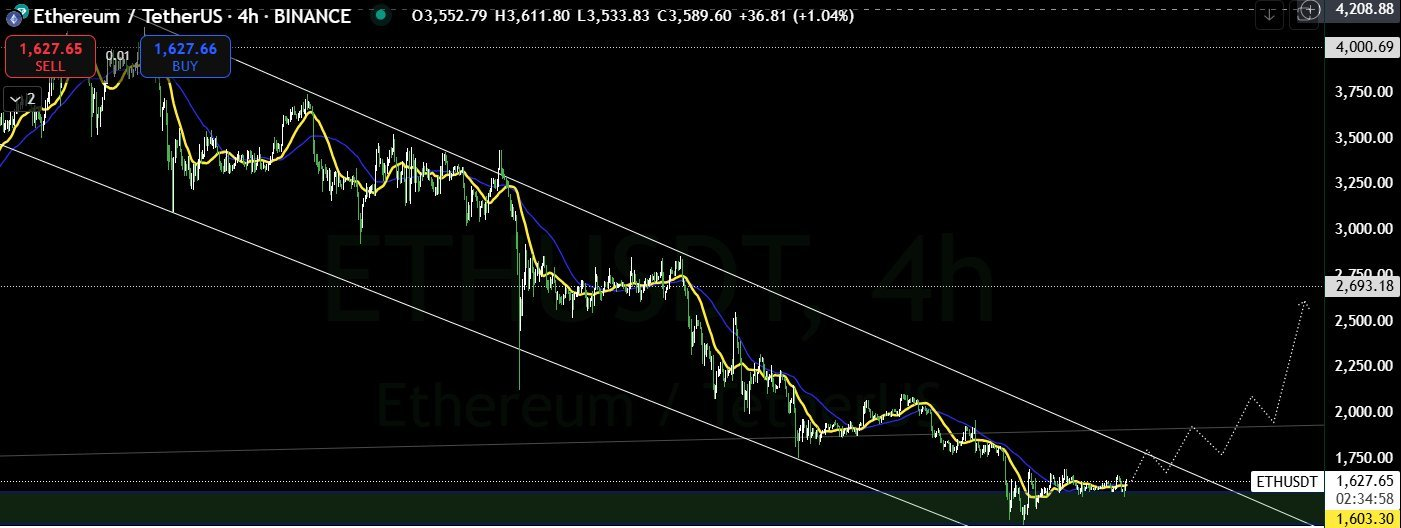 Projections show that if Ethereum clears short-term resistance, targets could shift upward to $1,750 and beyond. Further resistance levels are mapped at $2,250 and $2,693.18, with longer-term hopes of a move toward $3,000. Immediate support sits around $1,603.30, a key zone to preserve the bullish structure.