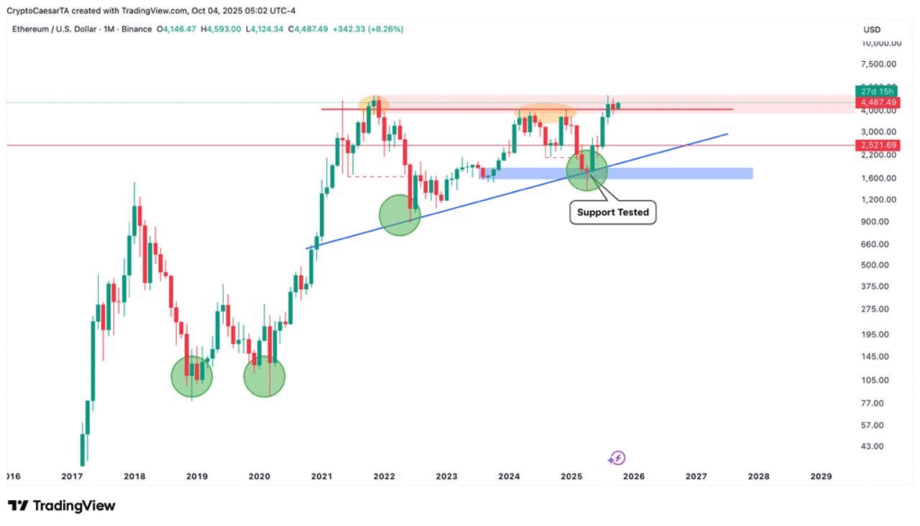 Analysts have identified $4,500 to $4,700 as the next crucial resistance zones for Ethereum. If Ethereum can successfully breach these levels, there is a potential for further upward movement, possibly targeting $5,000 or beyond.