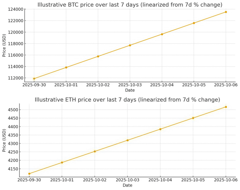Over the past week, Bitcoin has risen by approximately 10%, nearing the $123K mark, while Ethereum has reached around $4.5K. Bitcoin successfully held its $111K level, showcasing strong market momentum.