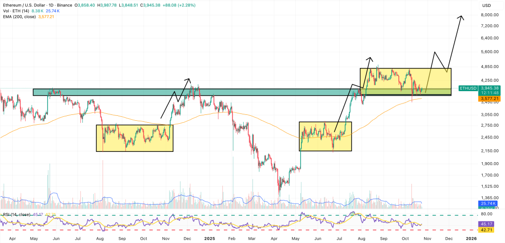 Ethereum ($ETH) is showing signs of a potential breakout, which could push the price toward $8,000. The recent price movement has seen Ethereum consolidating in a rectangle pattern, and analysts expect a confirmed bullish breakout above $4,800.