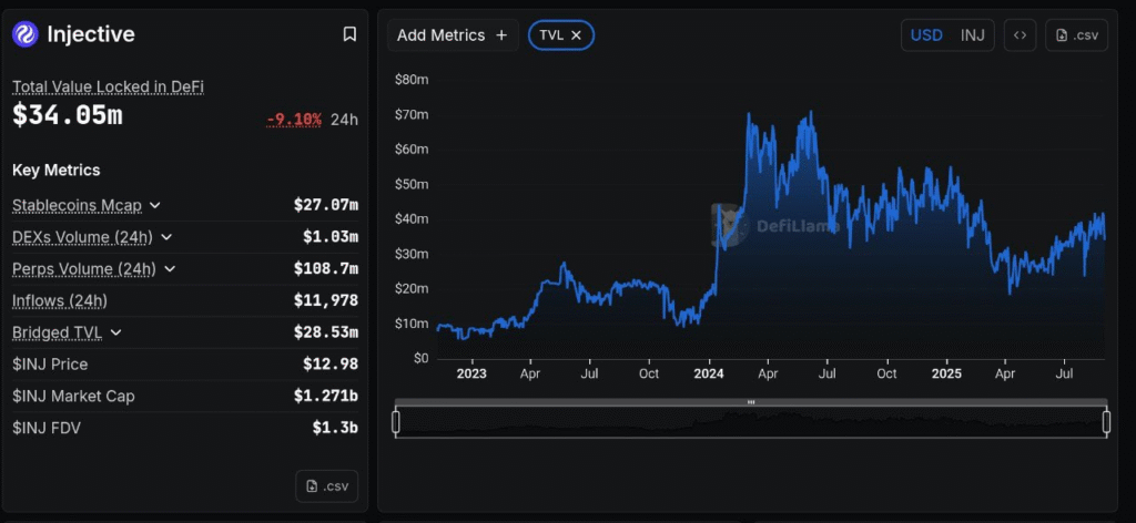 - Injective’s TVL increased by 77% in August, reaching over $34 million.