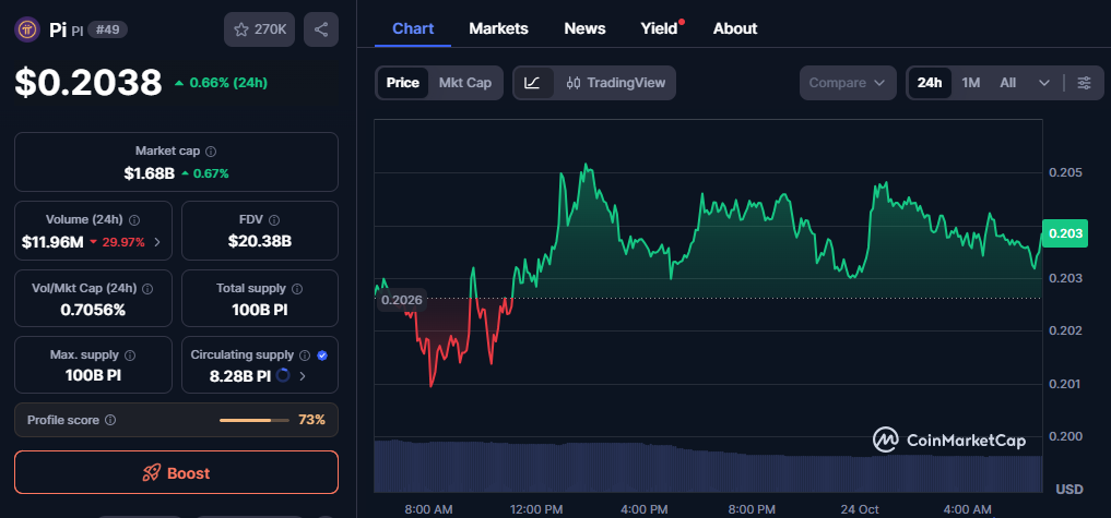 Pi Coin (PI) has been trading steadily around the $0.20 mark, despite the volatility seen across the cryptocurrency market. While many altcoins have struggled, Pi Coin’s price action has remained relatively stable, holding above key support levels.