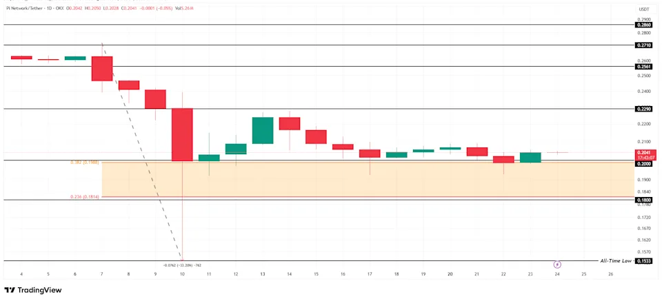 However, should Pi Coin dip below this support, the next key level of support would be $0.180, where the 23.6% Fibonacci retracement line lies. A breakdown below this level could dampen any bullish outlook, opening the door for further losses.