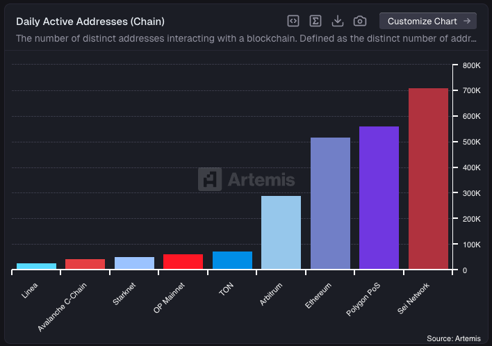 - SEI Network leads with 700K daily active users, surpassing Ethereum.