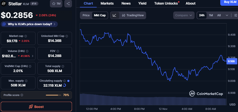 The market cap for XLM stands at $9.16 billion, and its 24-hour trading volume is $184.1 million. These metrics suggest that while there are some short-term challenges, XLM remains a considerable force in the market.