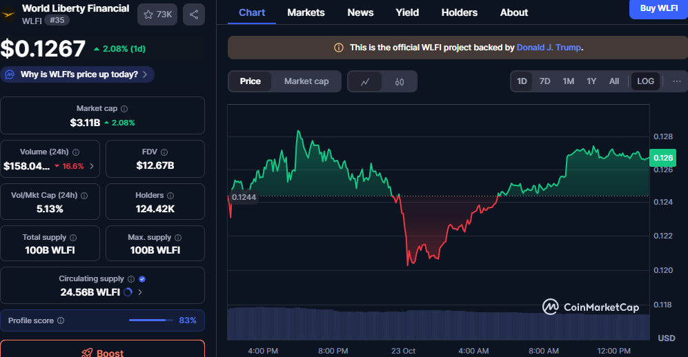 In conclusion, World Liberty Financial (WLFI) continues to hold firm with rising capitalization, strong liquidity, and a growing holder base. The consistent upward trend of the token in the area around $0.1267 confirms the optimism concerning its future prospects. With the growing activity, World Liberty Financial (WLFI) will continue to be a strong and robust cryptocurrency in the international market.