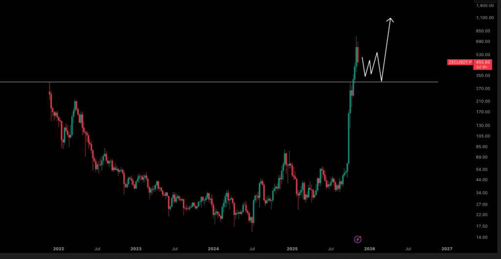 ZEC market has been witnessing significant price action in recent weeks. After a sharp rise, with ZEC surpassing $500 for the first time since 2018, some analysts are warning of a potential price correction.